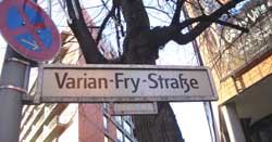 ![]()  | 									 Part of the new development was the creation of new streets and the decision on what name they should carry. In this context, the then head of Mercedes Benz, Edzard Reuter took the decision to name one of the new streets in honour of Varian Fry.  | 			||