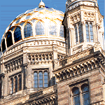 | How the photomontage "Sinagoga and Synagogue (and their Protectors)" developed | It was very quickly clear that the two landscapes behind the women would have to be replaced with the respective synagogues. It is interesting to note that the architecture of the Great Synagogue in Rome appears more 'Nordic', while the architecture of the New Synagogue in Berlin is, without a doubt, Moorish i.e. 'southern'. The two styles of architecture are therefore 'crosswise' in the picture. | |||